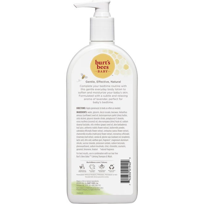 Soothe your little one to sleep with the subtle, relaxing aroma of this lotion. The botanical scent of Lavendar and Vanilla naturally calms as it moisutrizes your baby's delicate skin to prepare for a good night's sleep. Packaging may vary.