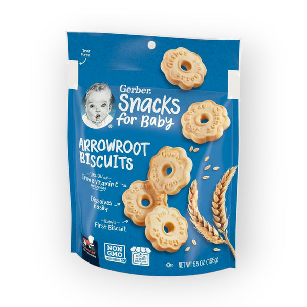Gerber Arrowroot Flavored Biscuit Snacks For Baby - 155Gms, 10+Months